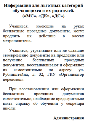 Информация Комитета по транспорту по вопросам проездных билетов Электронный дневник в школе