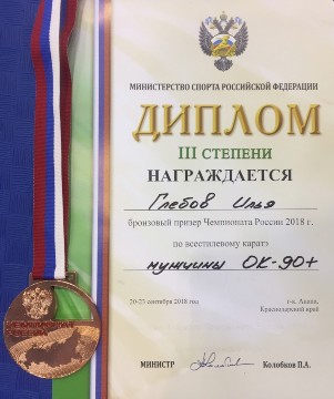 Поздравляем Глебова Илью Алексеевича с успешным выступлением на чемпионате России по всестилевому каратэ!