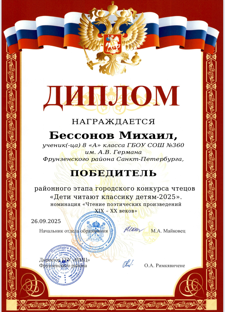 (ГБОУ СОШ № 360 имени А.В. Германа